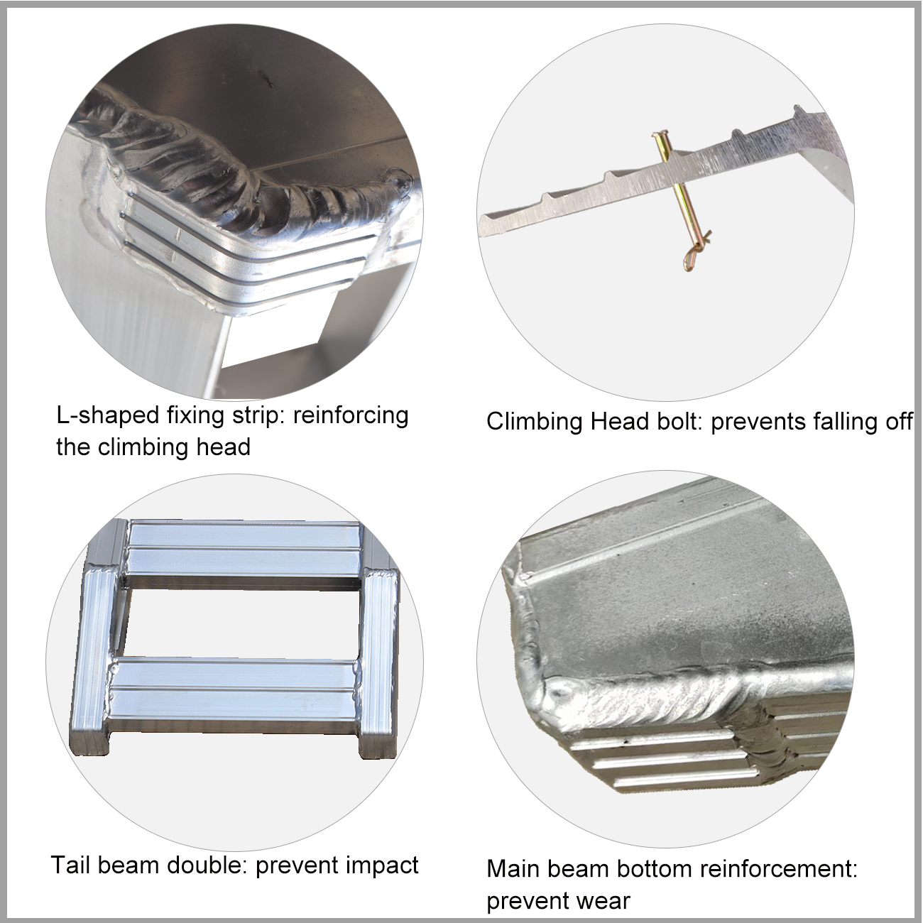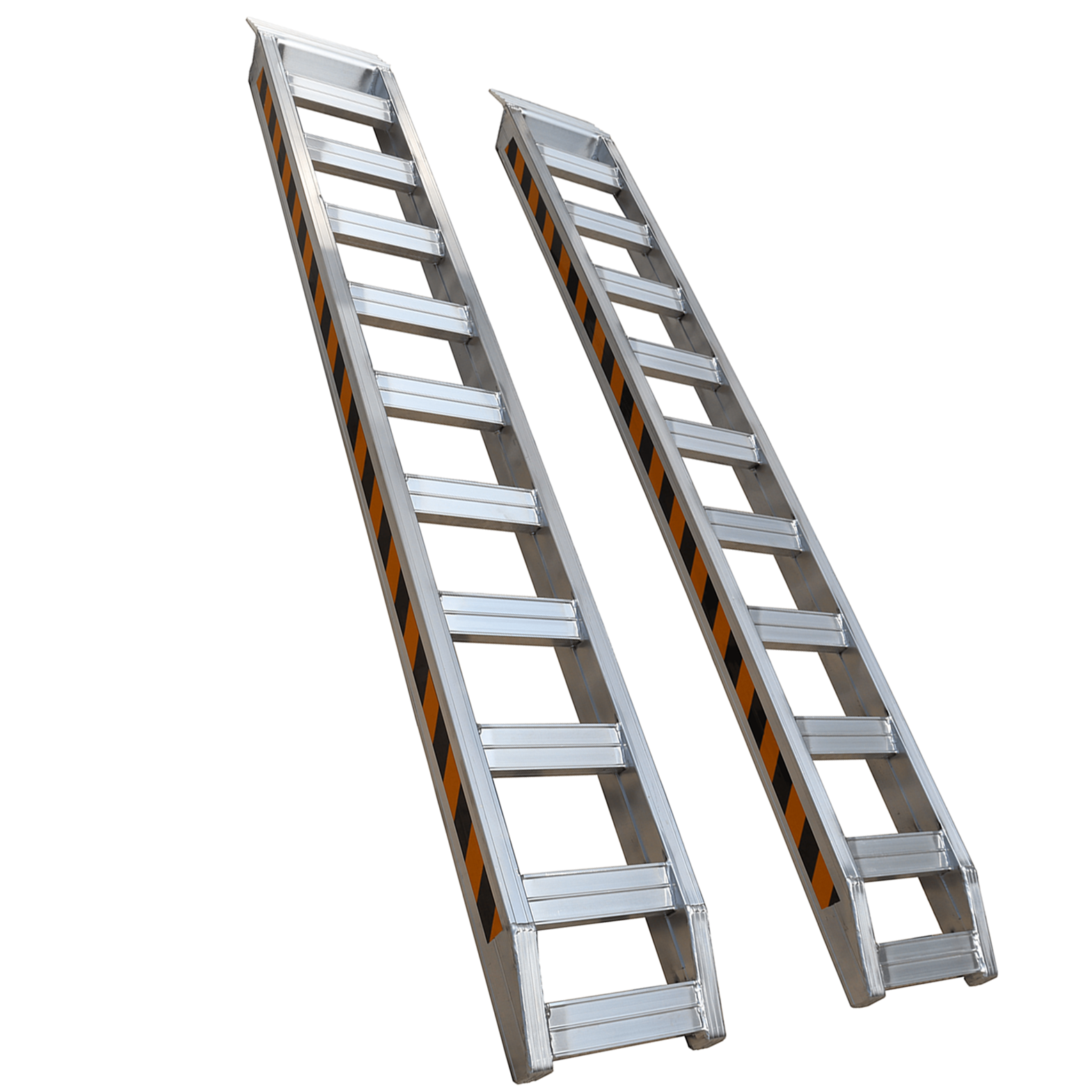 The bevel bar beam type ramp for rubber track machinery which is specially designed for the rubber track machine, which plays a key anti-slip effect, and also better reduces the self-weight of the aluminum ramp to achieve the best effect of light anti-slip.